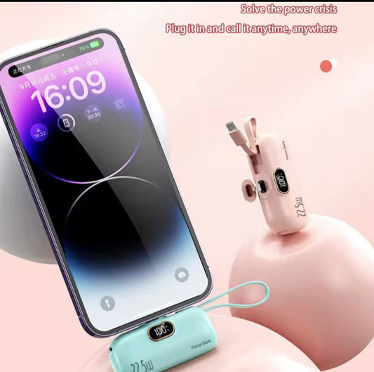 Close-up view of the multi-port card reader with USB, USB-C, Lightning, SD, and TF slots.30,000mAh Mini Portable Power Bank with Built-In Cable & Digital Display