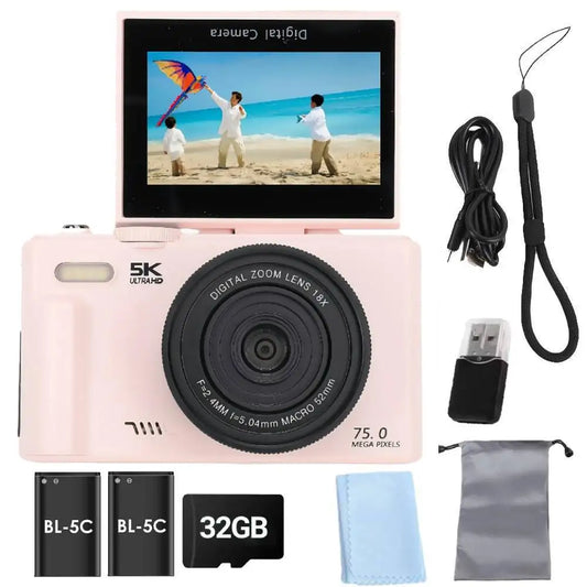75MP 5K Digital Camera with Flip Screen – Vlogging & Photography