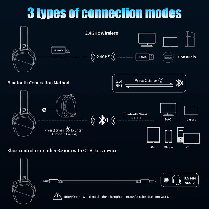 NUBWO G06 2.4G Dual Wireless Gaming Headset – 5ms Low Latency, 7.1 Surround Sound, Noise Cancelling Mic